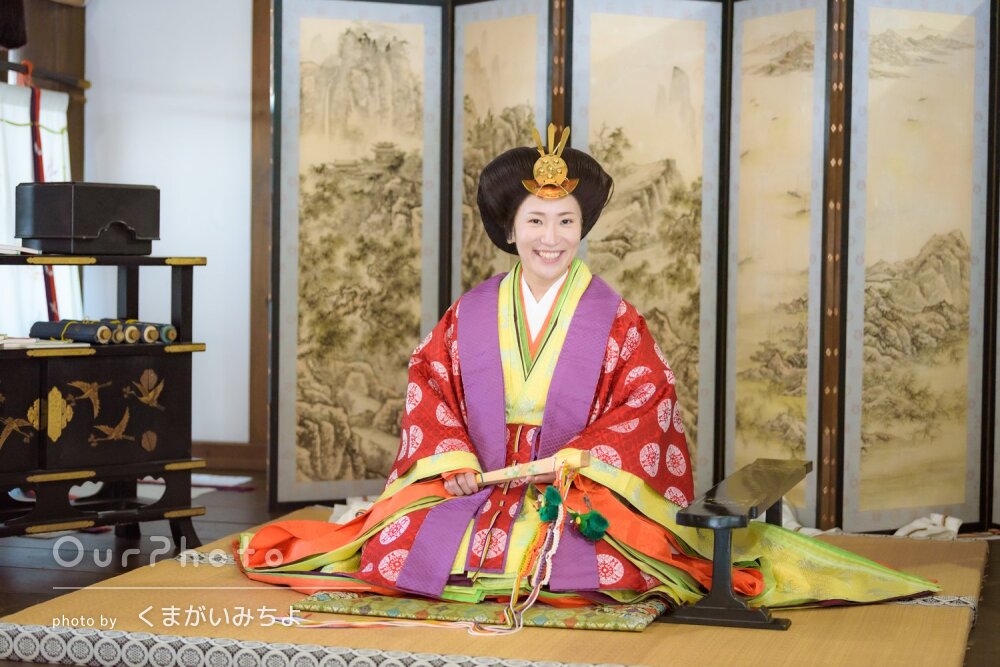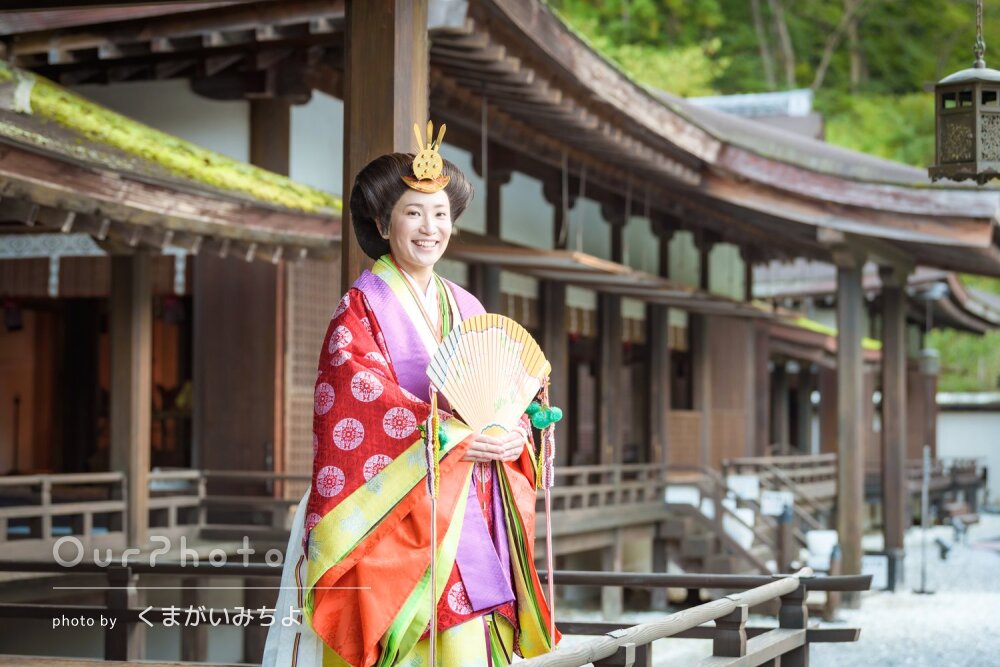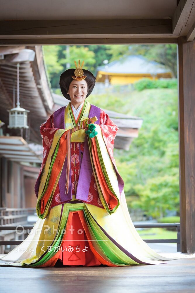 W成人式で、大河ドラマのロケ地にもなっている場所で十二単を撮影していただきました。