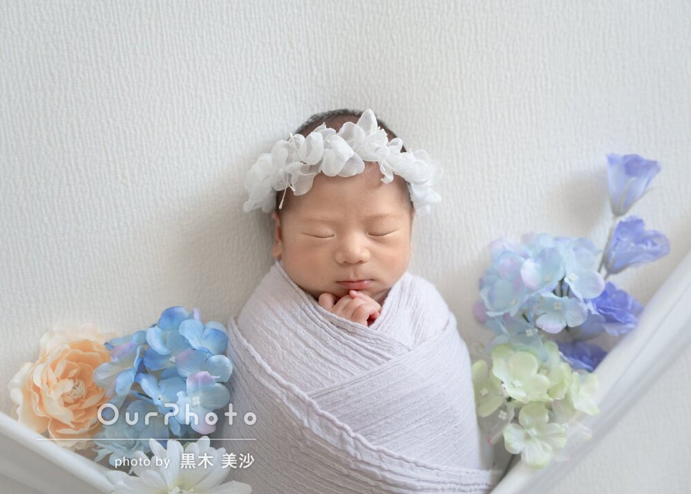 撮影日の直前(4日前)に依頼したにも関わらず、自宅でのニューボーンフォトを撮影していただけました。
