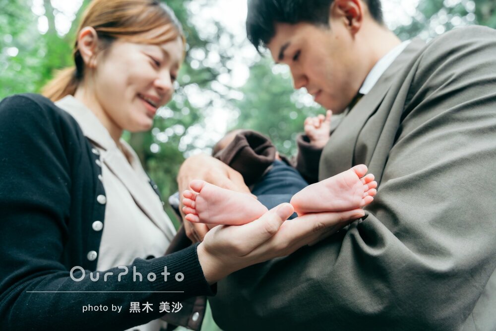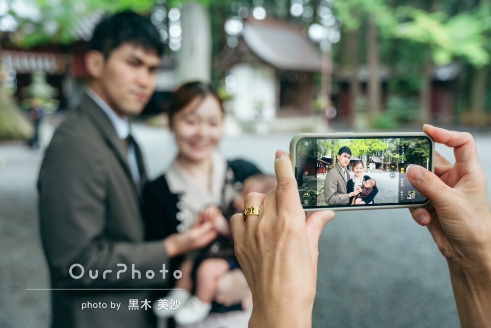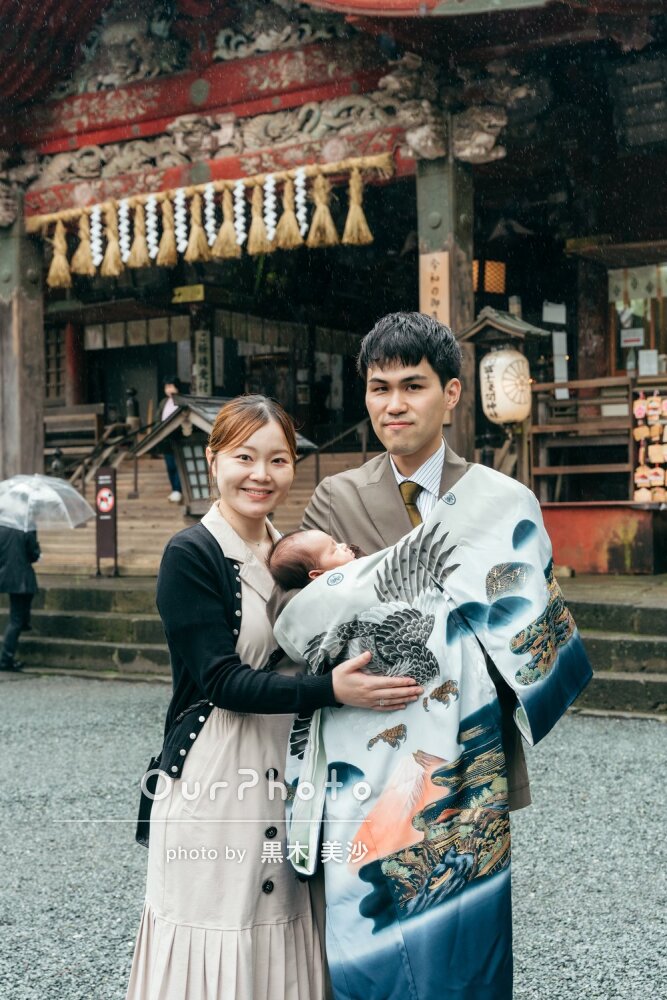 この度はお宮参りの撮影、ありがとうございました!直前の依頼だったにも関わらずスムーズに撮影していただきとても満足です。特に、当日は天気が不安定だった中、撮影場所や時間など細かいところまでお気遣いいただき大変助かりました。黒木様に依頼して本当によかったです。