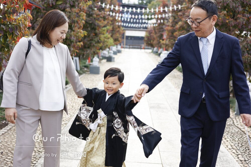 晴天の3連休だったこともあり、神社は混雑していましたが、空いているタイミングで撮影していただいて大変助かりました。