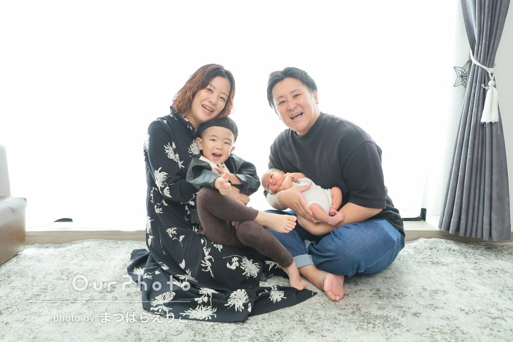 「自然体な写真」ご自宅で仲良くリンクコーデのニューボーンフォトの撮影
