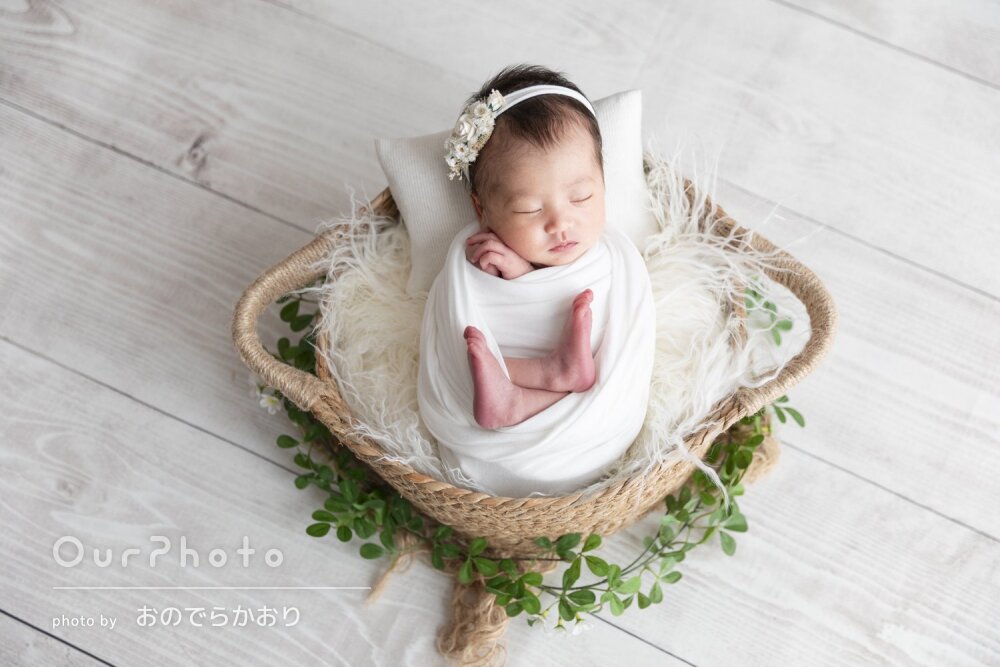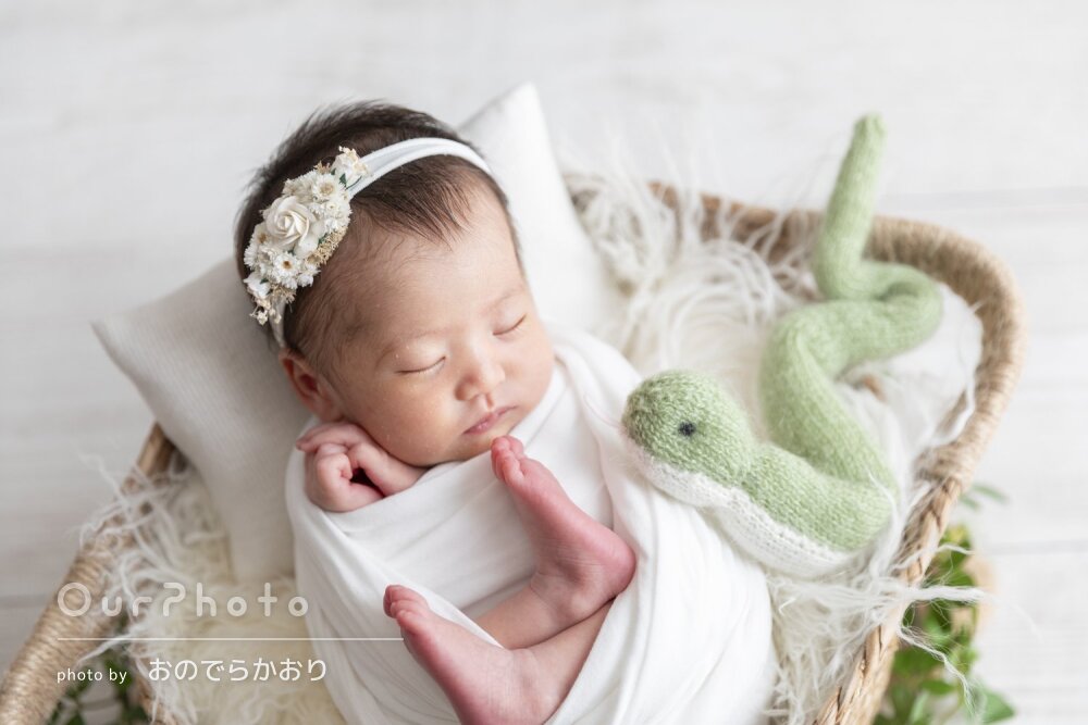 おくるみやかごなどを使って、可愛くスタイリングして撮影いたします!