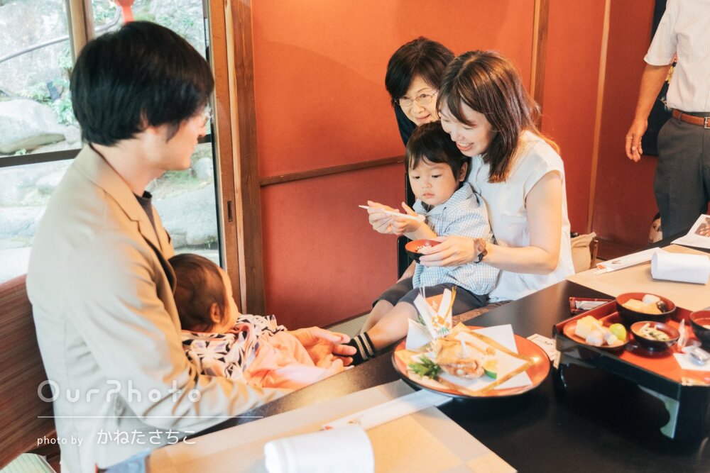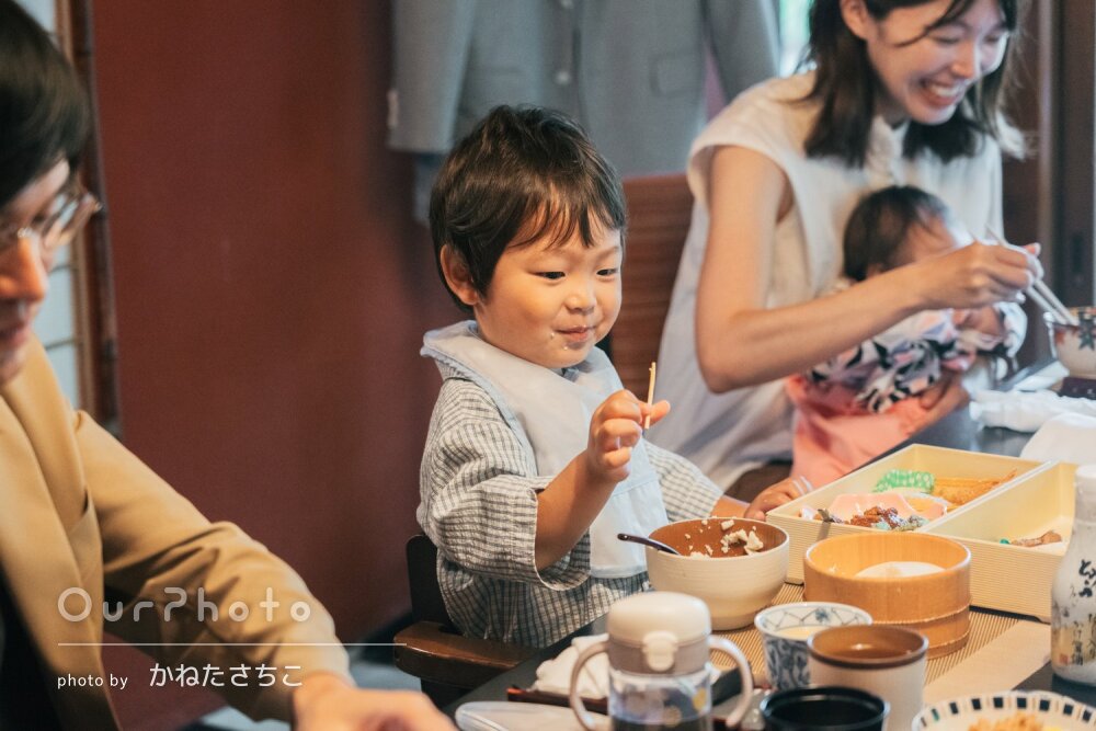 「自然体でいられました」家族の楽しい雰囲気いっぱいなお食い初めの撮影