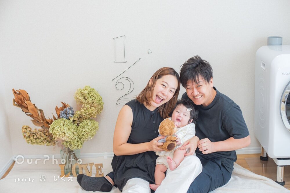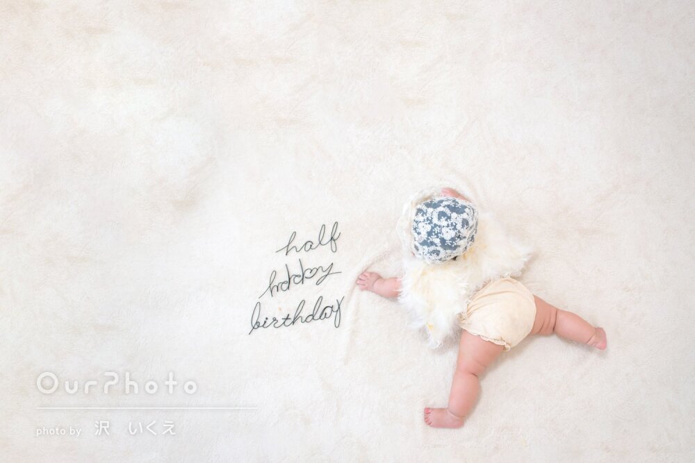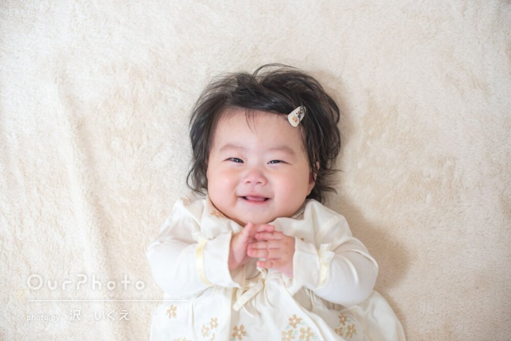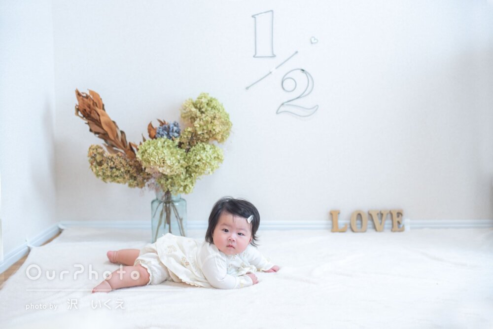 ご自身でご準備された命名書やお気に入りのぬいぐるみや小物なども当日提案させていただきながら撮影可能ですので、提案とご相談などお任せくださいね。