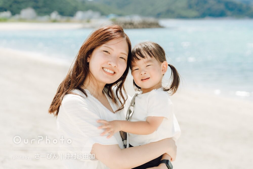 「大切な思い出を形に」海と輝くような笑顔がいっぱいな家族写真の撮影