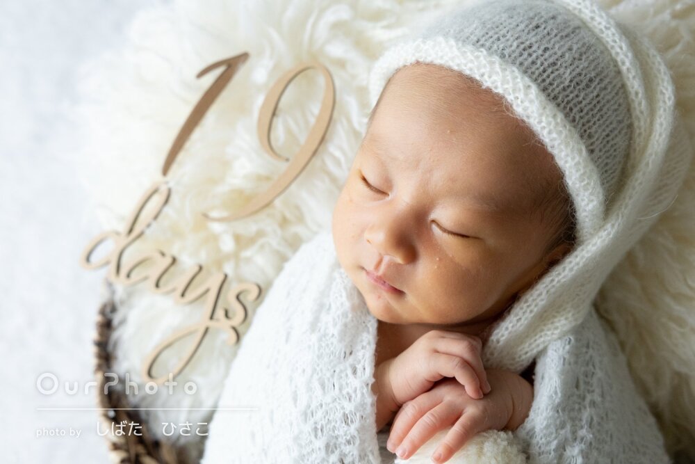 「満足の行く仕上がり」白色コーデでキュートなニューボーンフォトの撮影