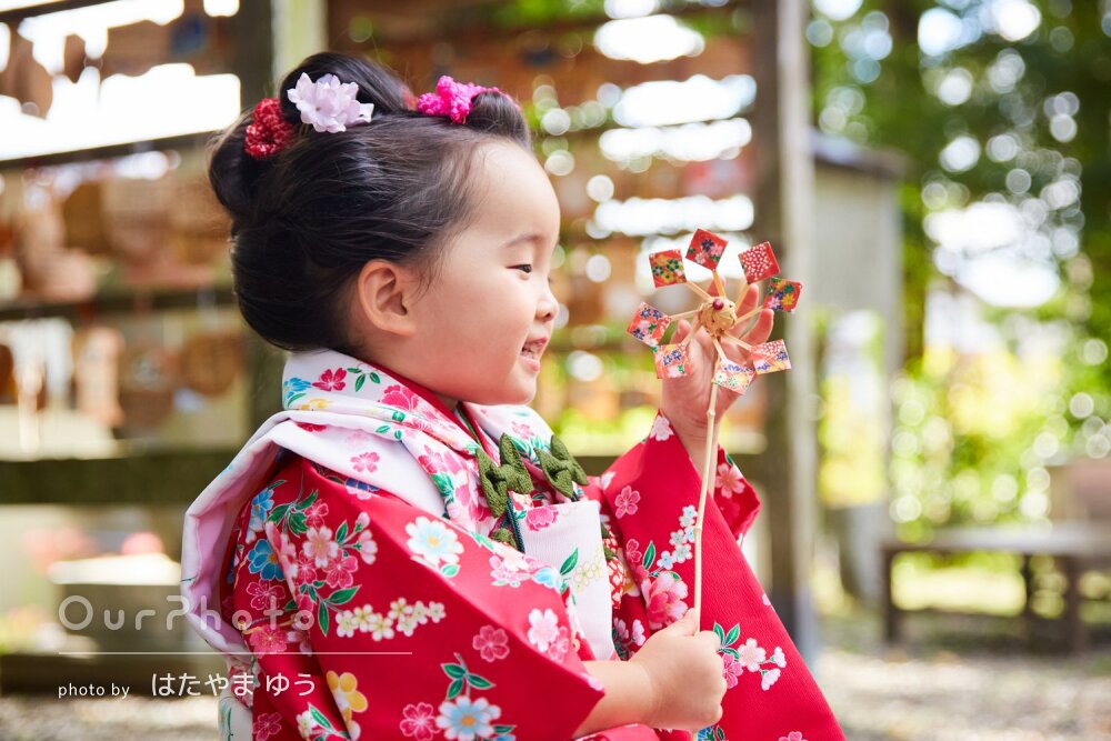 「どの写真も娘は笑顔で楽しんで」ひとつひとつの表情が可愛い七五三撮影