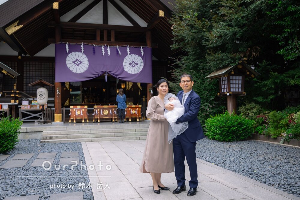 パパとママの愛情に包まれて明るく柔らかなお宮参り写真の撮影