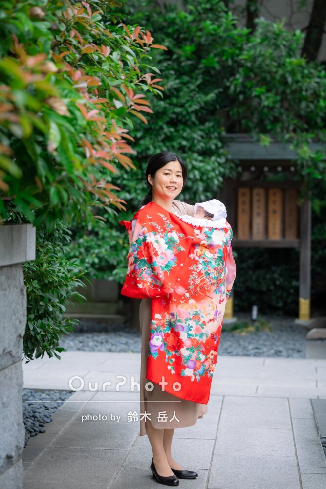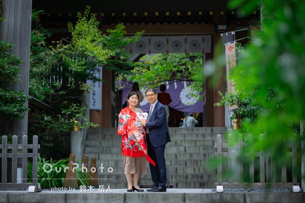 「思い出に残る素敵なお宮参り」色鮮やかな緑が神社に映えるお宮参り撮影