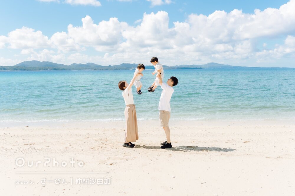 「両親や子供達も楽しみながら」リピーター様!沖縄の海で家族写真の撮影