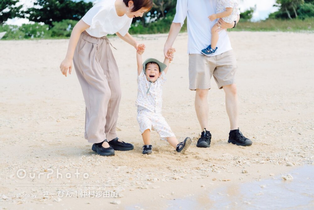 「こどもたちの自然な笑顔」旅行の思い出に!ビーチで家族写真の撮影