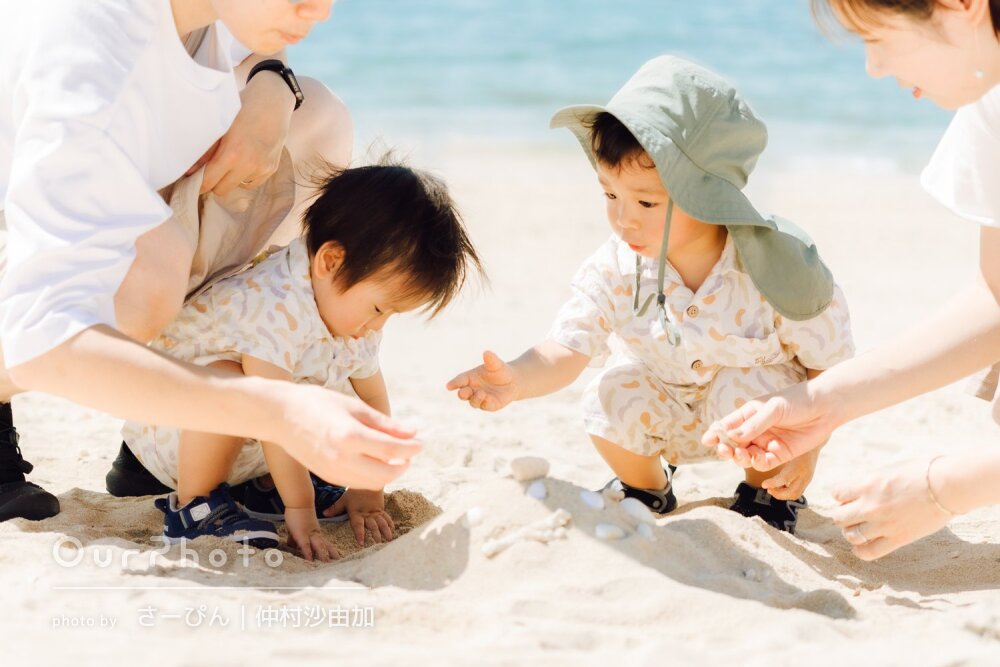 「大切な思い出を形に」海と輝くような笑顔がいっぱいな家族写真の撮影