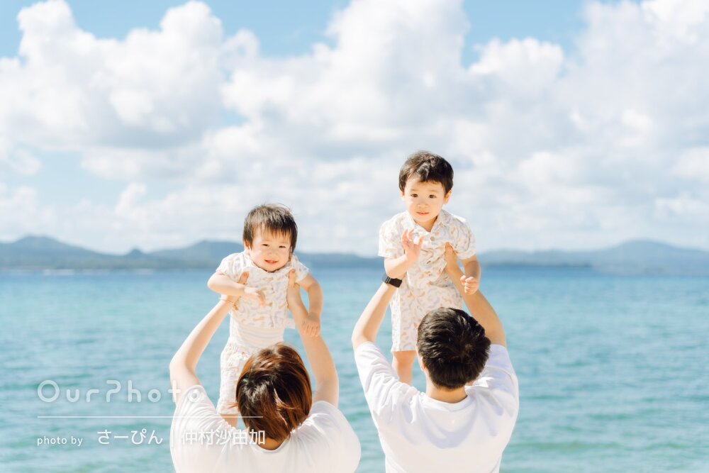 「色々な工夫でとても素敵」青い空と海に笑顔が映える最高の家族写真撮影