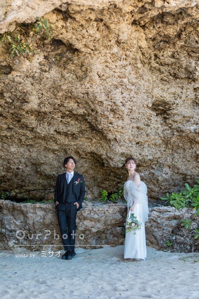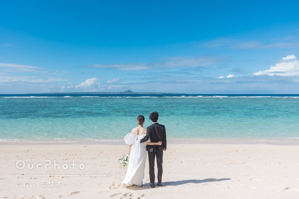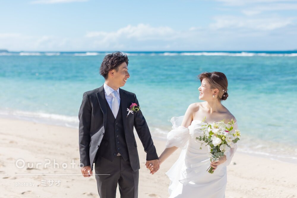 「楽しい時間」大切な思い出に沖縄の海を背景にウェディングフォトの撮影