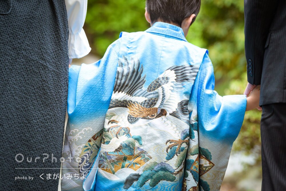 「人見知りせずに」着物の柄デザインまで鮮やかに!凛々しい七五三の撮影