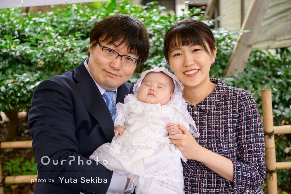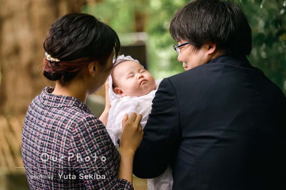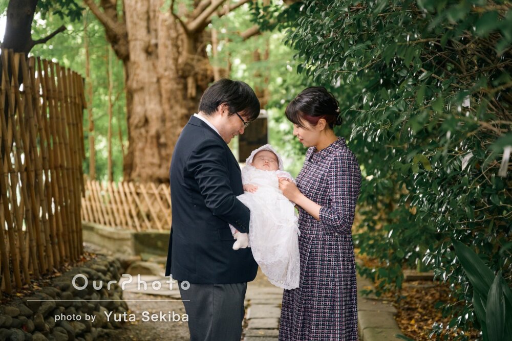 緑豊かな背景がどれも美しい!パパとママの笑顔が素敵なお宮参りの撮影