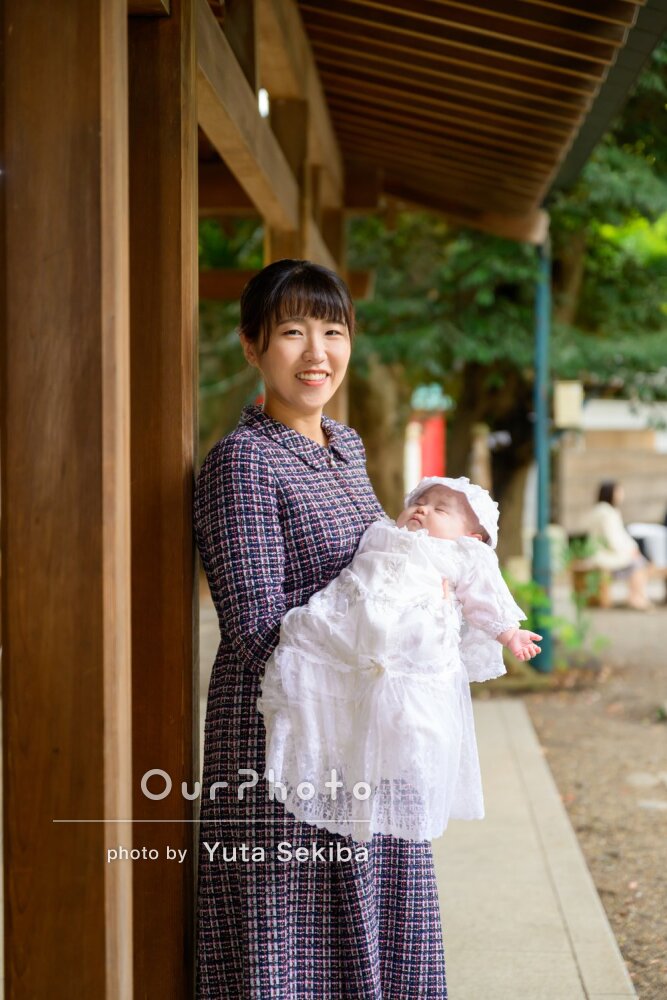 「良い表情が撮れてる」穏やかな空気感!神社で女の子のお宮参りの撮影