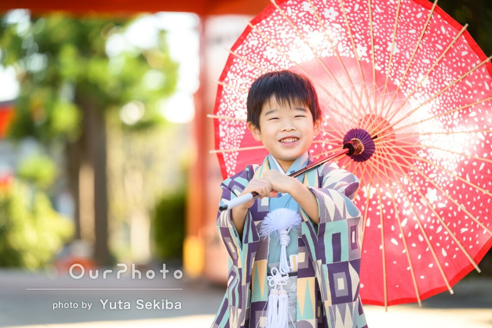 「家族にとって大切な思い出」和傘を持って笑顔!3歳男の子の七五三撮影
