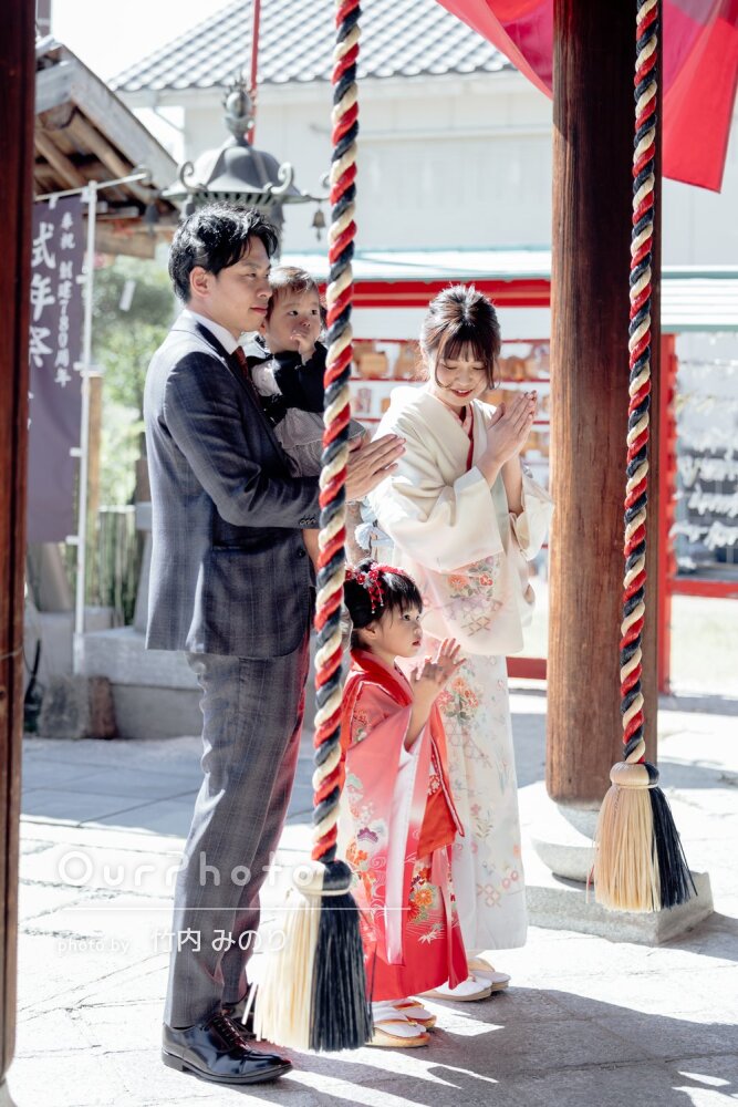 「期待以上に応えてくださり感謝」神社で三姉妹の七五三とお宮参りの撮影