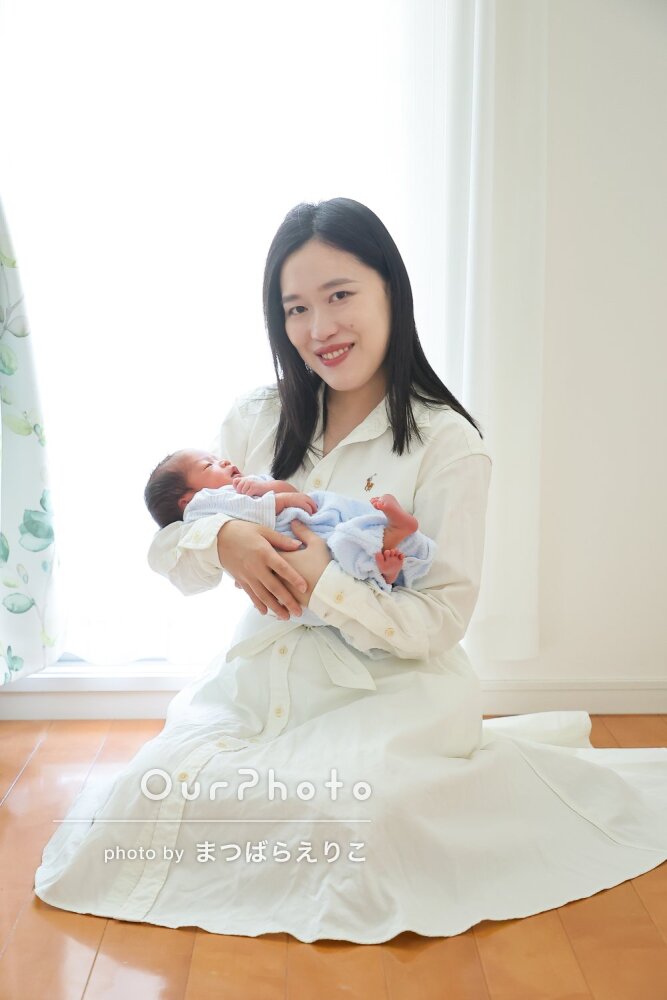 ニューボーンフォトの撮影をお願いしました。上の子(2歳)を含めた家族写真もプラン内で撮っていただけるとのこと、また難しい条件がなく時間内であれば色々撮ってくださるとのことでまつばらさんにお願いしました。