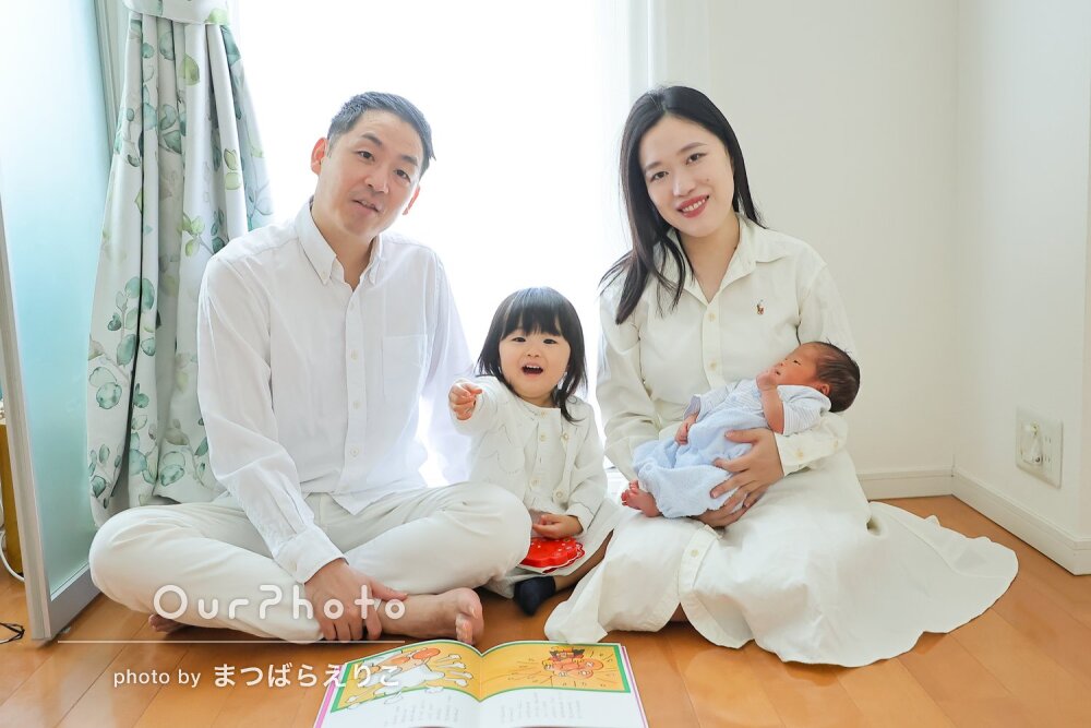 「自然体な写真」ご自宅で仲良くリンクコーデのニューボーンフォトの撮影