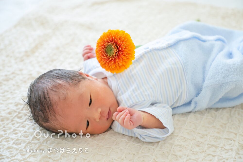 「自宅の雰囲気を残した写真」季節感あふれるニューボーンフォトの撮影