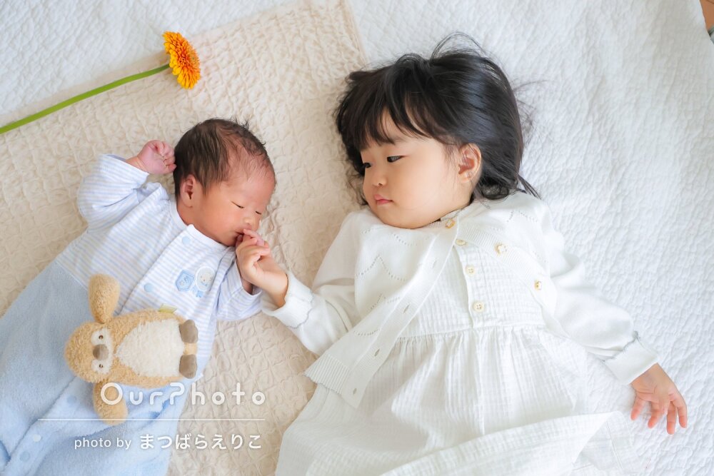 「一瞬のタイミングを見逃さずに」お兄ちゃんとニューボーンフォトの撮影