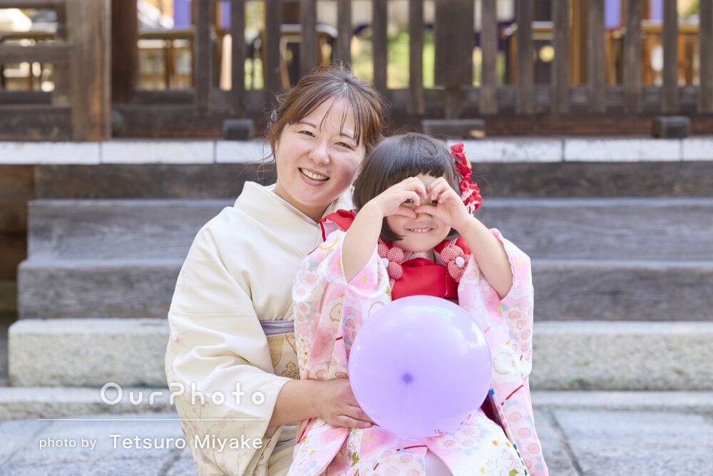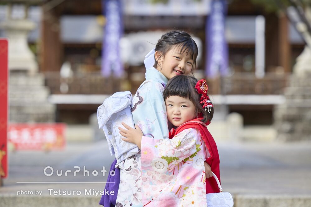 「撮影スポットもおさえており」姉妹のかわいい姿を収めたお宮参りの撮影