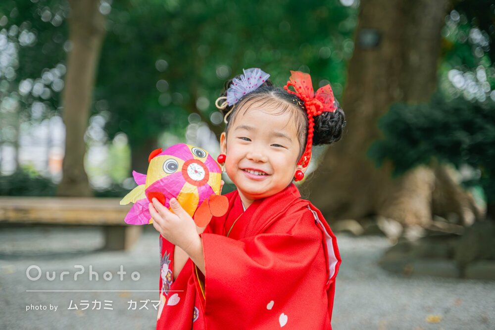 「絶妙にマッチして」可愛い表情!華やかな和装の女の子の七五三の撮影