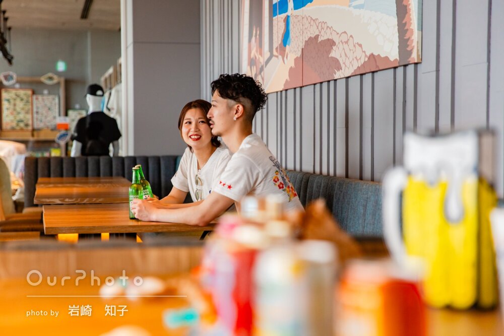 「本当に嬉しく」美しい海と空!笑顔が光る仲良しカップルフォトの撮影