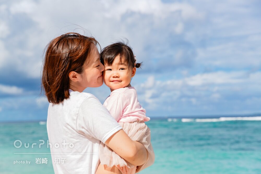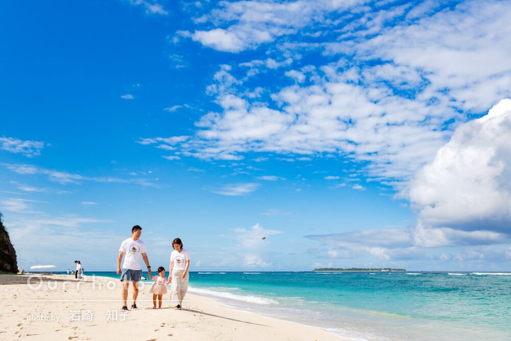 「家族みんなにとって特別なひととき」青い海!沖縄旅行で家族写真の撮影