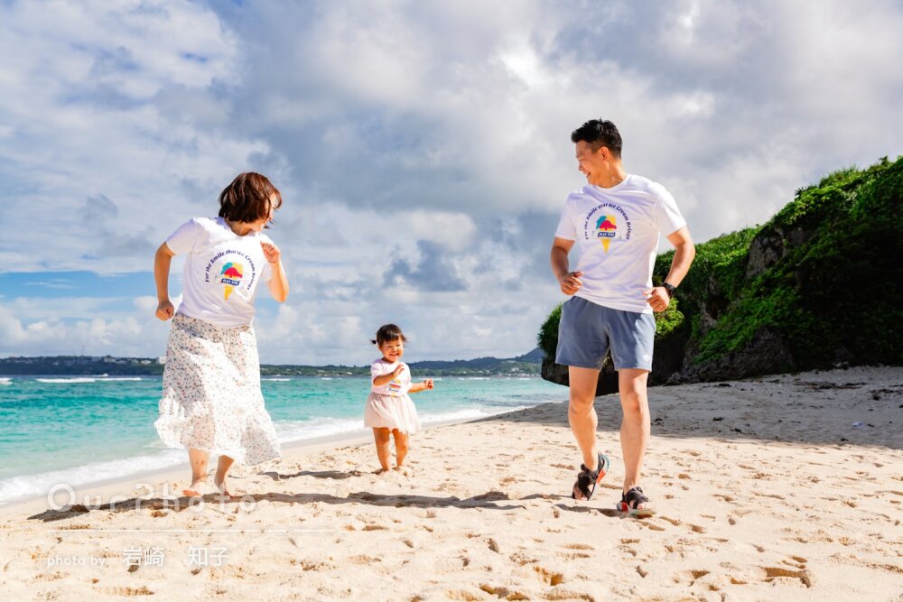 「とても優しく」沖縄の海にリンクコーデが素敵!家族旅行フォトの撮影