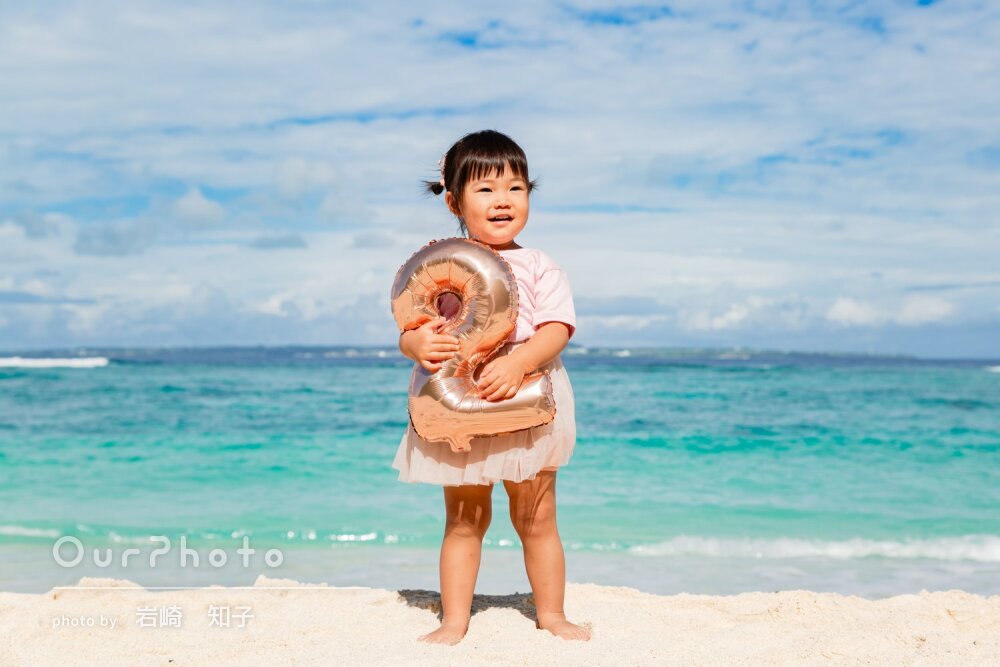 ビーチで開放感たっぷり!お嬢さま2歳のお誕生日記念旅行の撮影