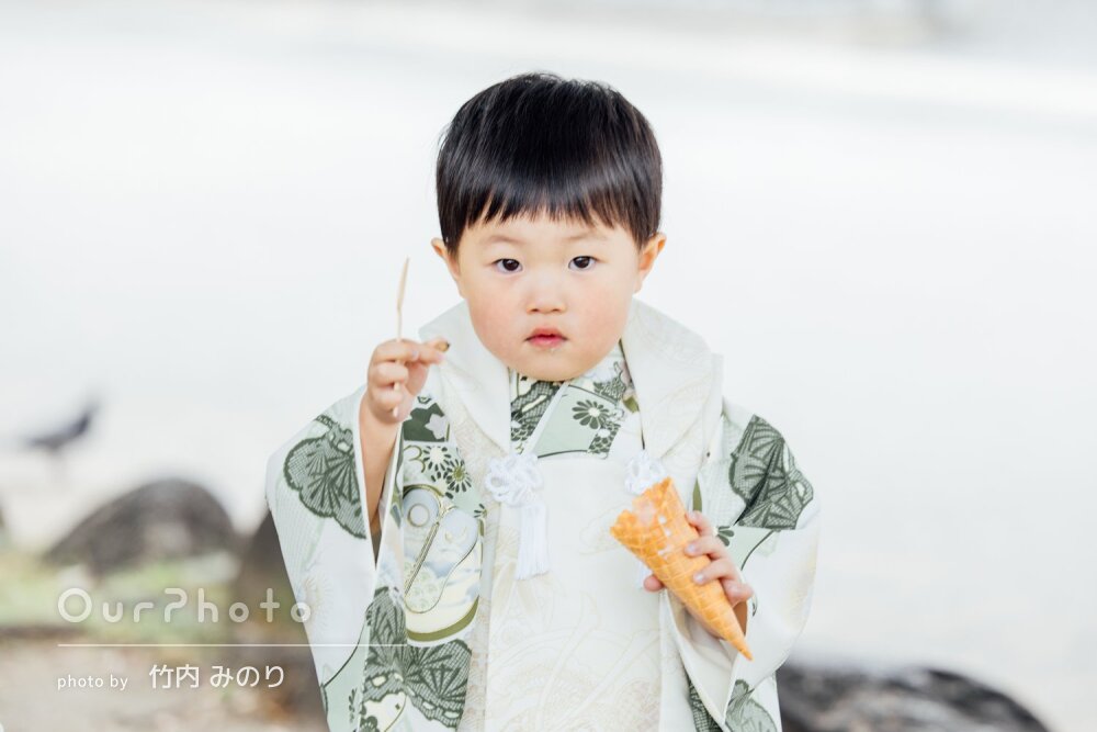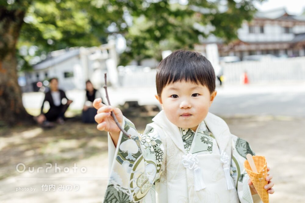 「できた写真を見るのが楽しかったです」男の子の3歳の七五三の撮影