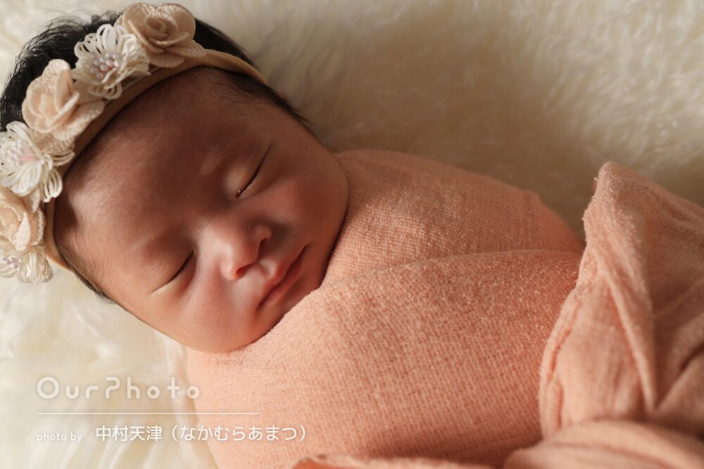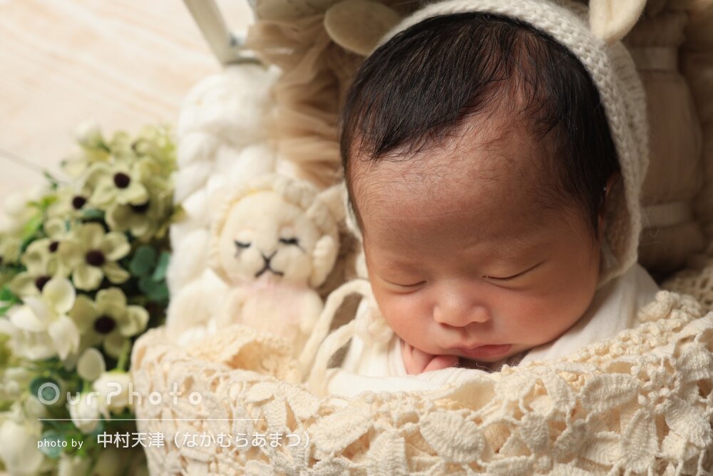 「希望通りの写真」自宅で愛らしい小物使いのニューボーンフォトの撮影
