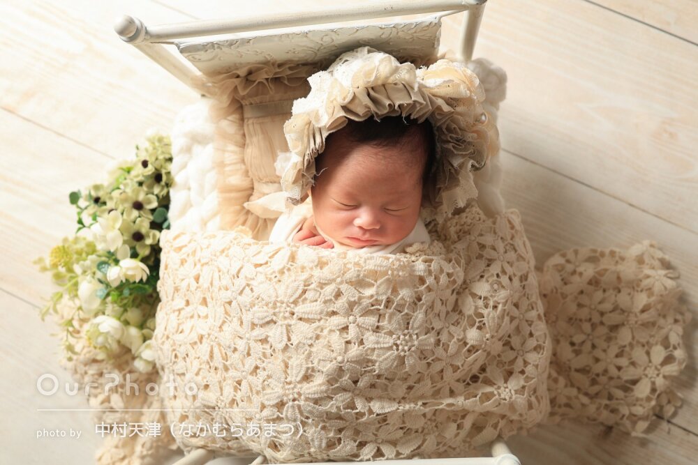 「すごくいい思い出」小物使いがオシャレ!素敵なニューボーンフォト撮影