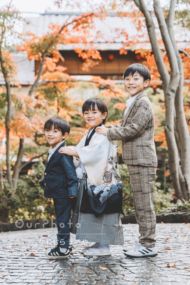 「不思議なくらい素敵な写真」黄色の羽織袴が神社に映える七五三の撮影