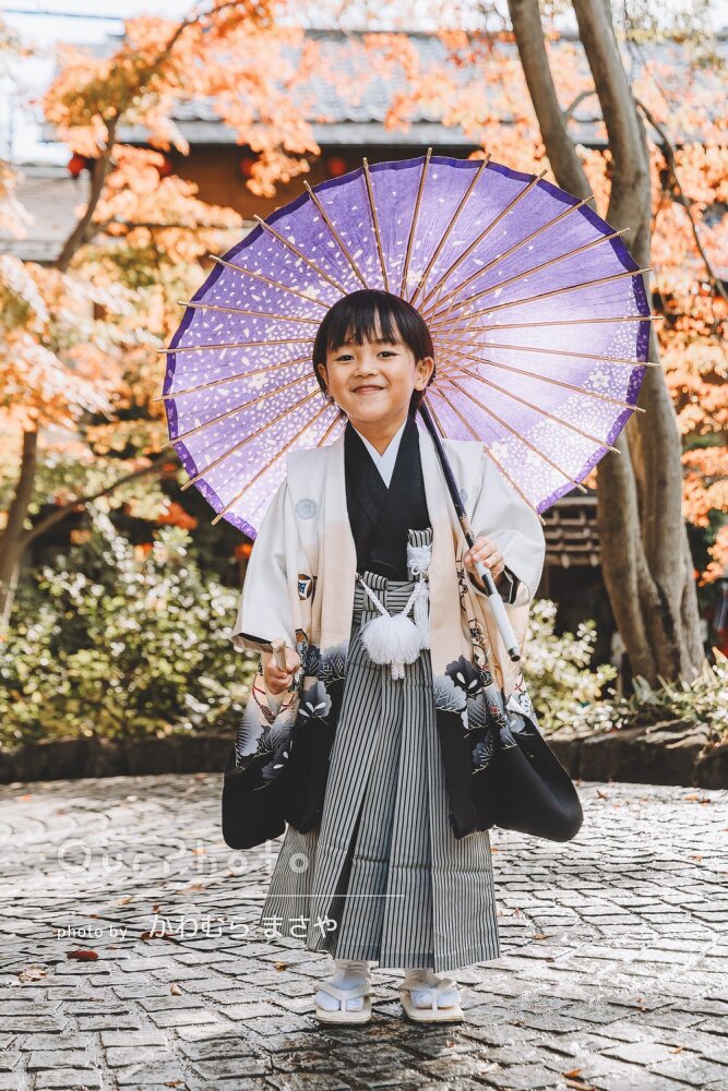 「素敵な写真をたくさん」袴姿と笑顔がチャーミングな男の子の七五三撮影