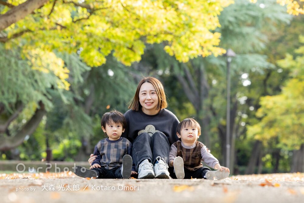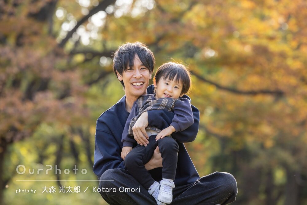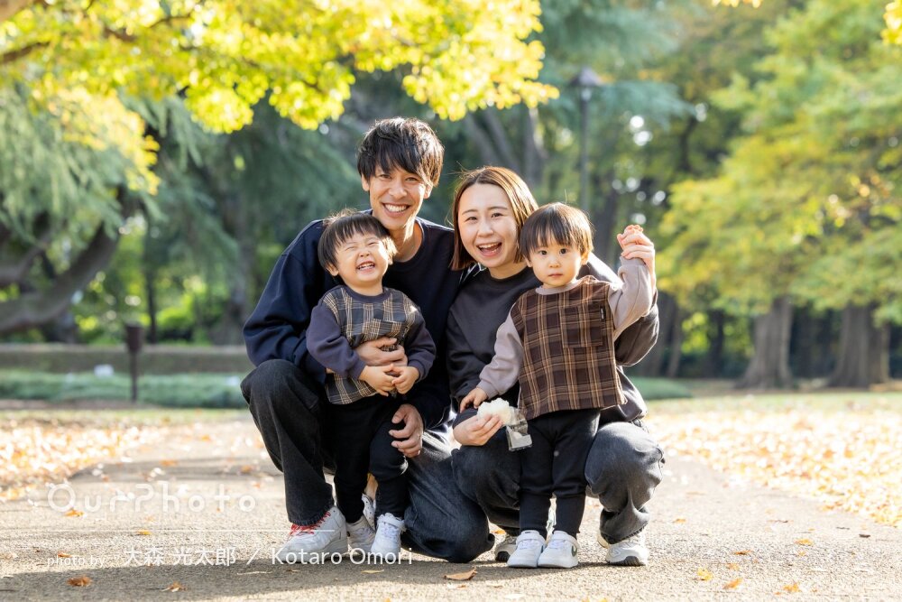 「子供のペースに合わせて」公園で自然な笑顔が素敵な家族写真の撮影