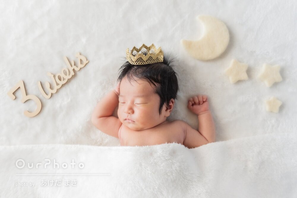 くっきりした目鼻立ちが凛々しく可愛い!素敵なニューボーンフォトの撮影