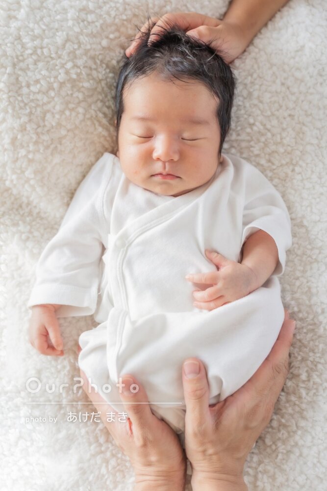 「楽しい雰囲気で撮影」自宅で白を基調としたニューボーンフォトの撮影
