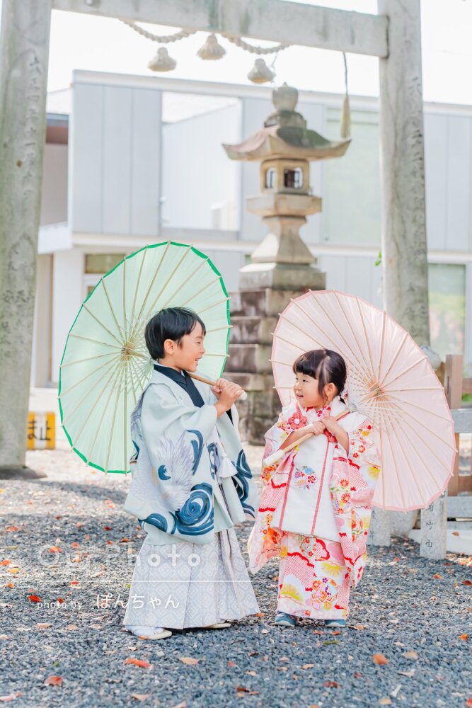 「子供達の笑顔をすぐに引き出して」ニコニコ可愛い兄妹の七五三の撮影