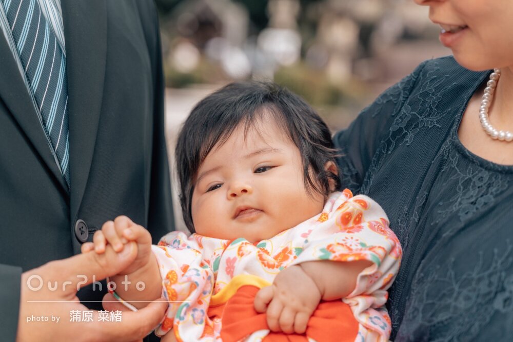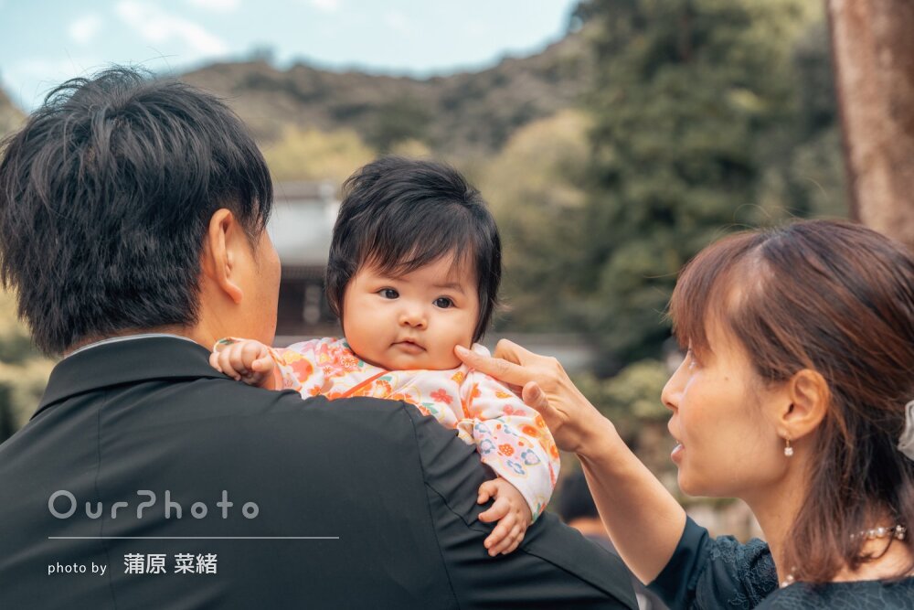 「上手な声かけ」お兄ちゃんも嬉しそう!親族揃って楽しくお宮参りの撮影