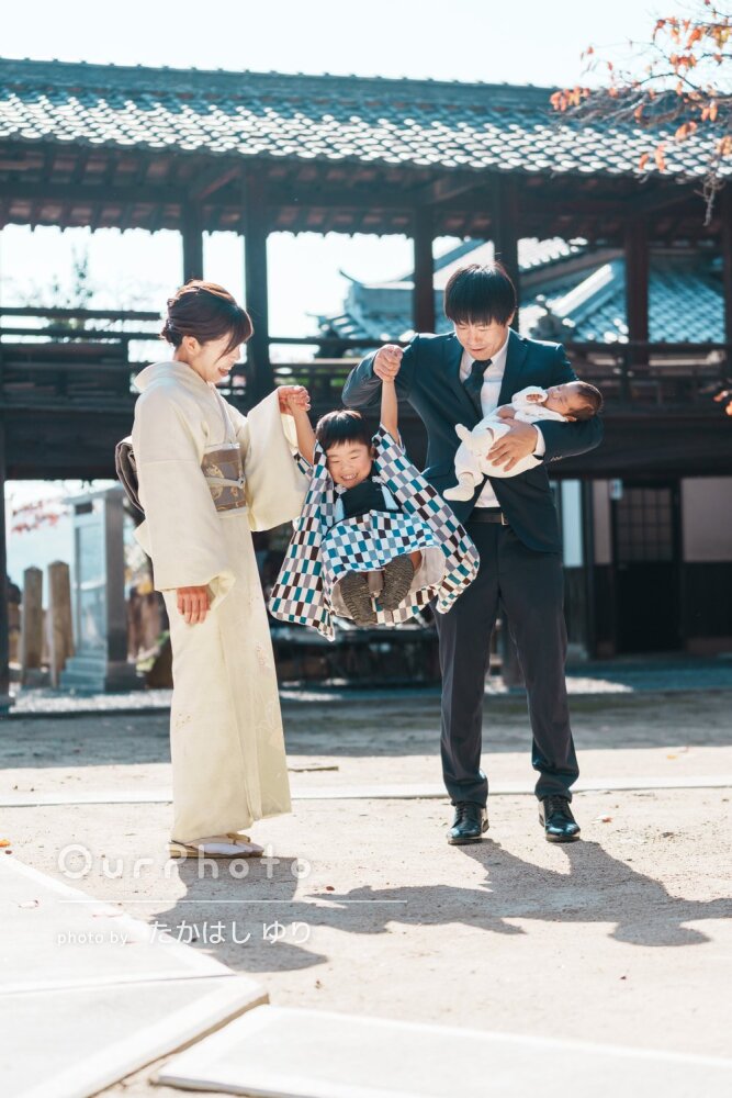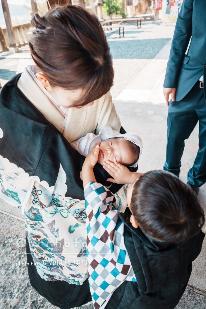 「終始笑顔で楽しい」ママも和装でお兄ちゃんの七五三と弟のお宮参り撮影