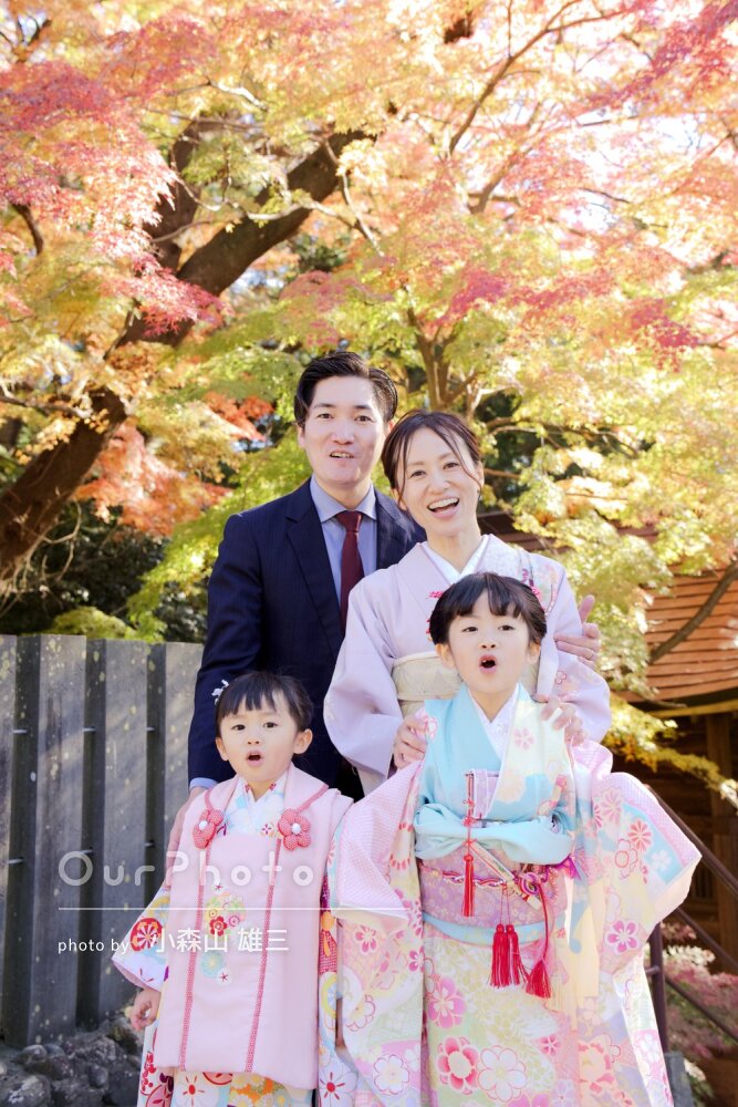 「とても良い思い出」姉妹とママの和装が華やか!紅葉を背景に七五三撮影