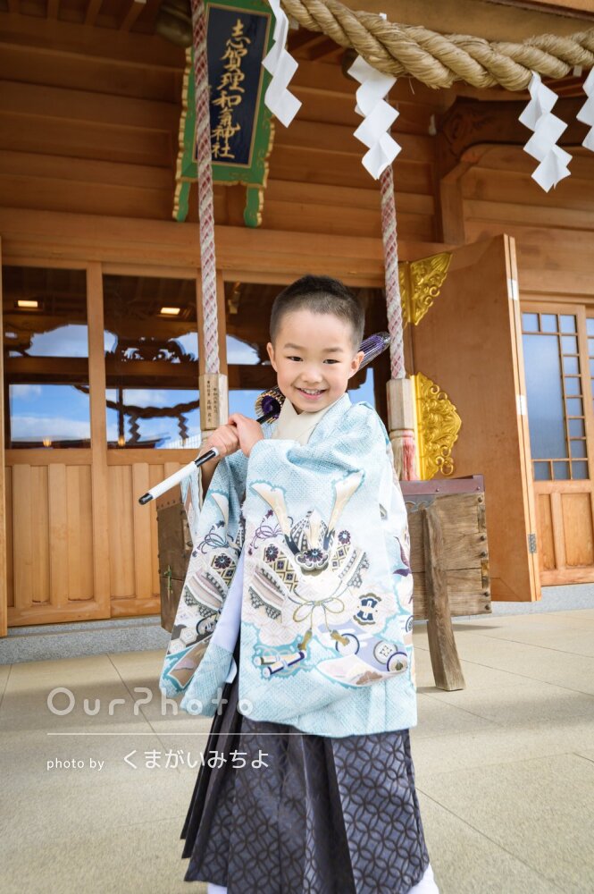 「とってもいい写真」淡い水色の羽織姿が凛々しい男の子の七五三の撮影