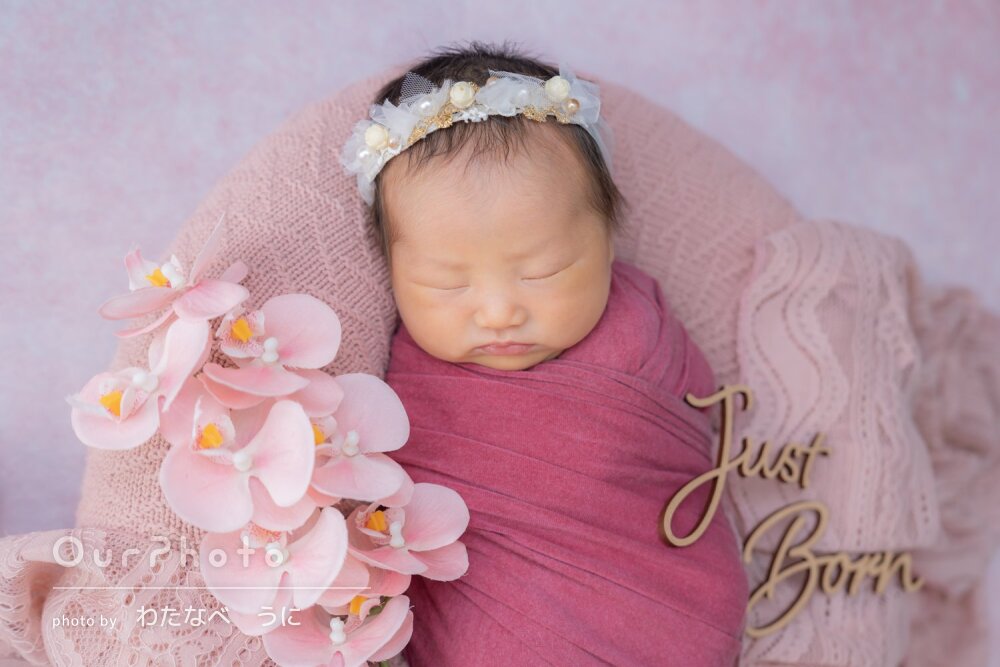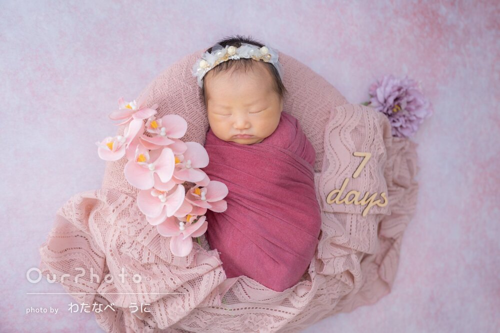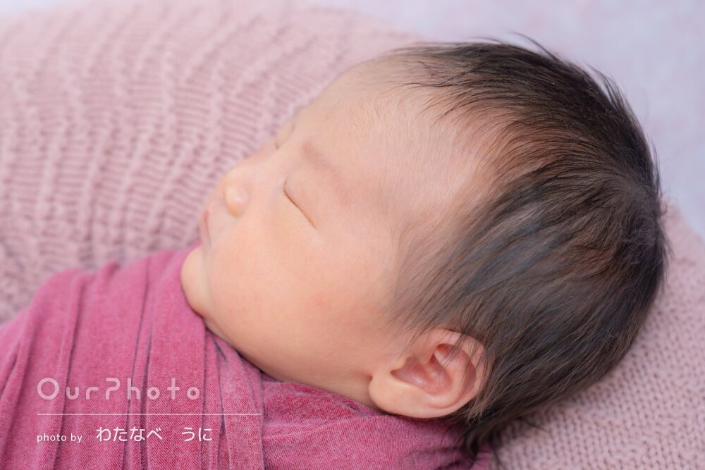ニューボーンフォトは1日1組限定予約(赤ちゃんの生活リズムを優先/衛生面の配慮)で