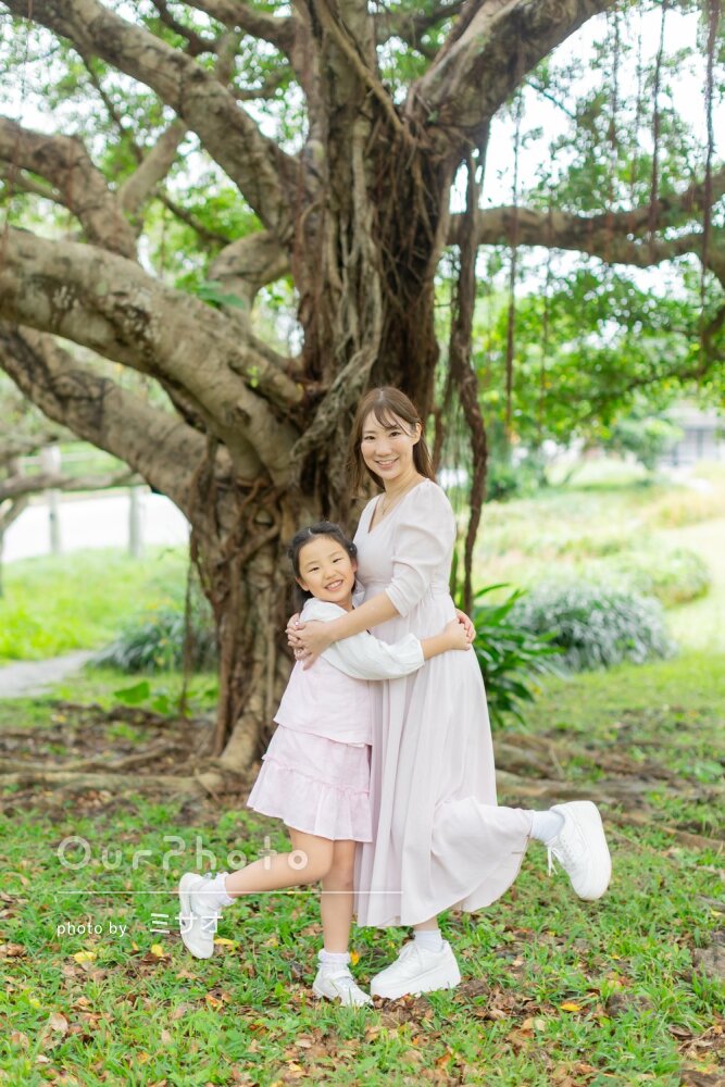 「フクギ並木やシーサーでの前でも」沖縄を満喫!楽しく家族写真の撮影