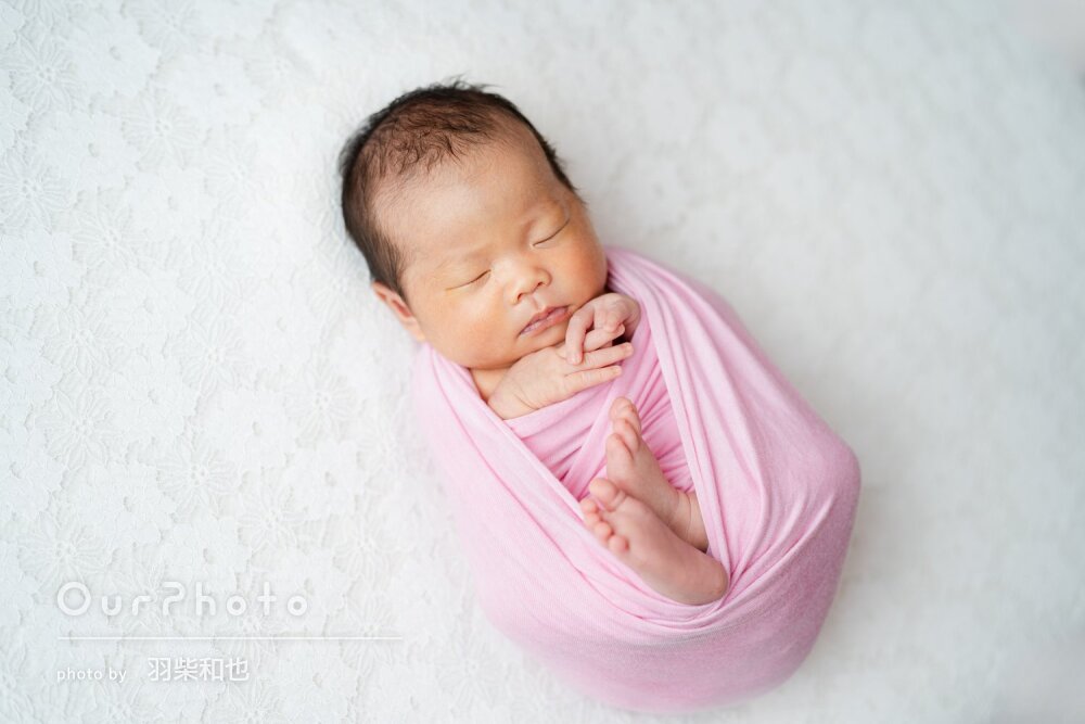「とても良かった」白いおくるみ姿がキュートなニューボーンフォトの撮影