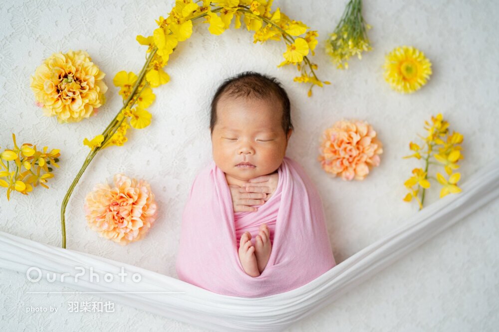 「思っていたよりも色々なパターン」お花と可憐なニューボーンフォト撮影